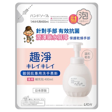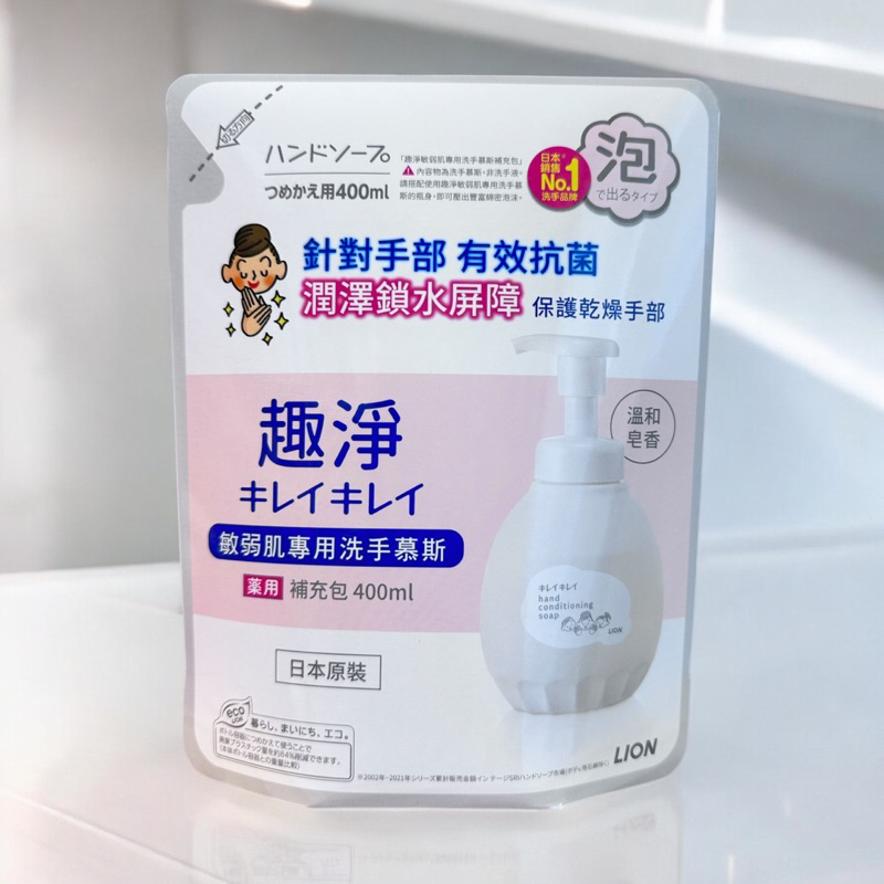 【現貨】日本 LION 獅王 趣淨敏弱肌專用洗手慕斯 洗手乳 溫和皂香/薰衣草香 450ml / 補充包400ml
