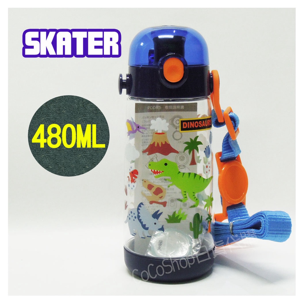 【現貨】日本 skater 彈蓋式直飲水壺 ( 恐龍) 480ML PDDR5 附揹帶 水壺 水杯 學習杯