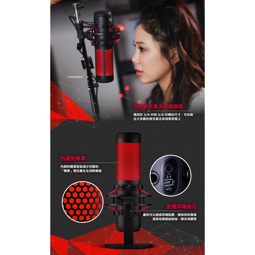 【促銷中】金士頓HyperX QuadCast USB麥克風(HX-MICQC-BK) 直播麥克風 直播必備收音超好