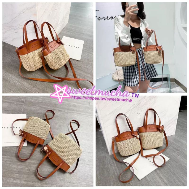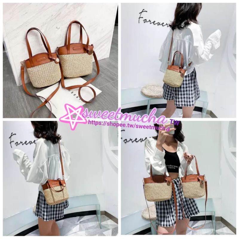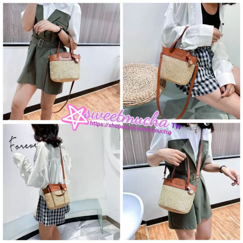⛱️現貨秒出🚚 韓版 夏天必備 質感 手工 拼布 編織包 甜美 清新 休閒 草編包 野餐 藤編包 渡假 手提包 小托特