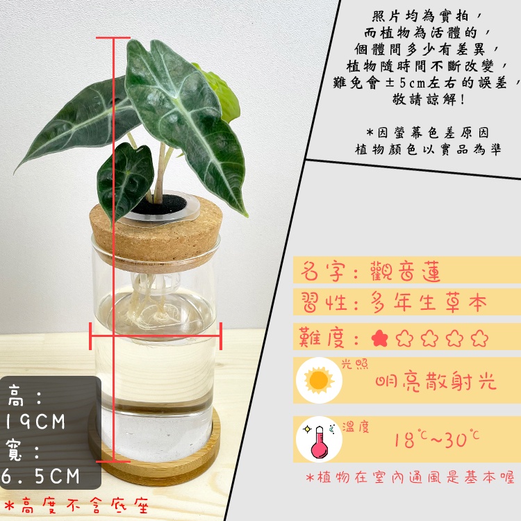 【理想小品】仙女觀音蓮【現貨】水耕盆栽 玻璃圓柱瓶 無土種植 簡單 觀葉植物 室內植物 玻璃飾品 花盆 盆栽 植物