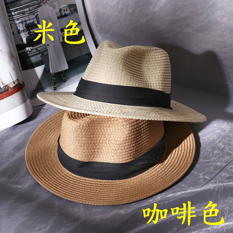 【當天出貨現貨ing】ns網紅草帽女夏天復古英倫平頂禮帽韓版小清新沙灘防曬遮陽帽潮