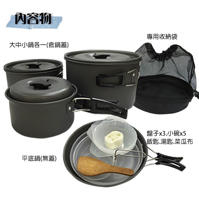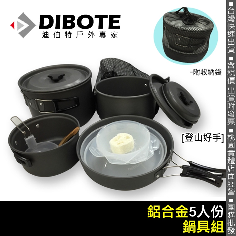 【登山好手】戶外便攜 露營野餐 鋁合金《5人份鍋具組》湯鍋鍋子*防燙防滑折疊握把 附收納袋攜帶方便