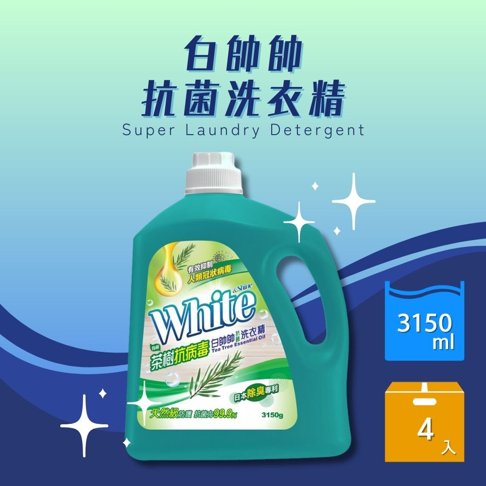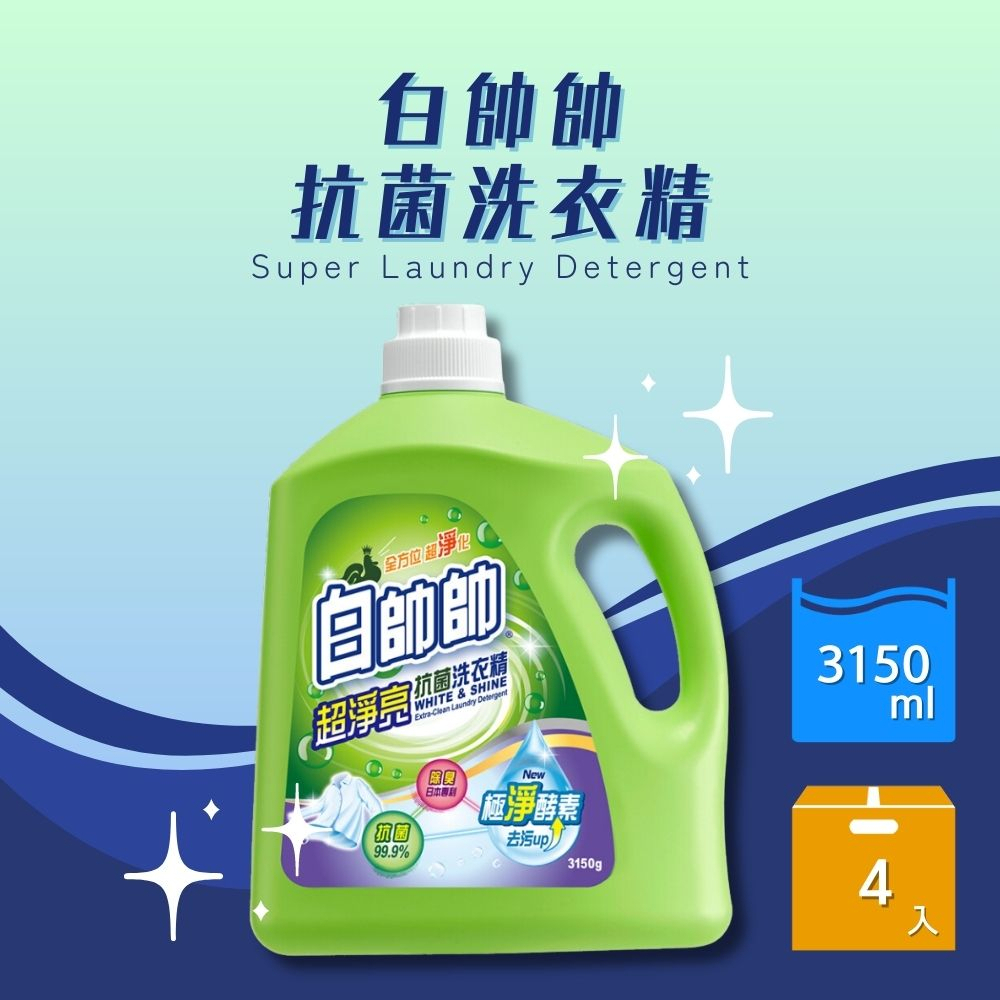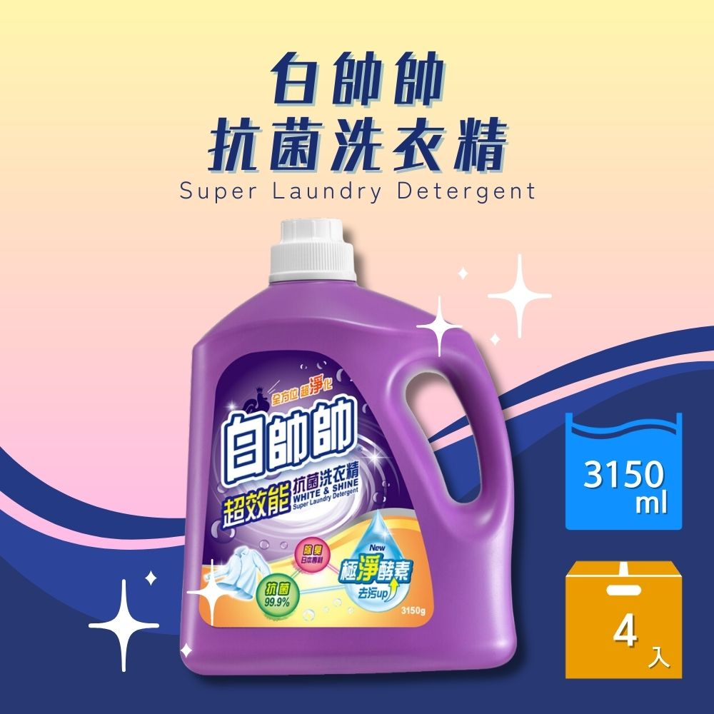 【白帥帥】抗菌洗衣精 (超淨亮、鮮彩豔色、超效能、小蘇打抗菌、天然橘油、茶樹抗病毒、鼠尾草抗菌)-3150g*4入