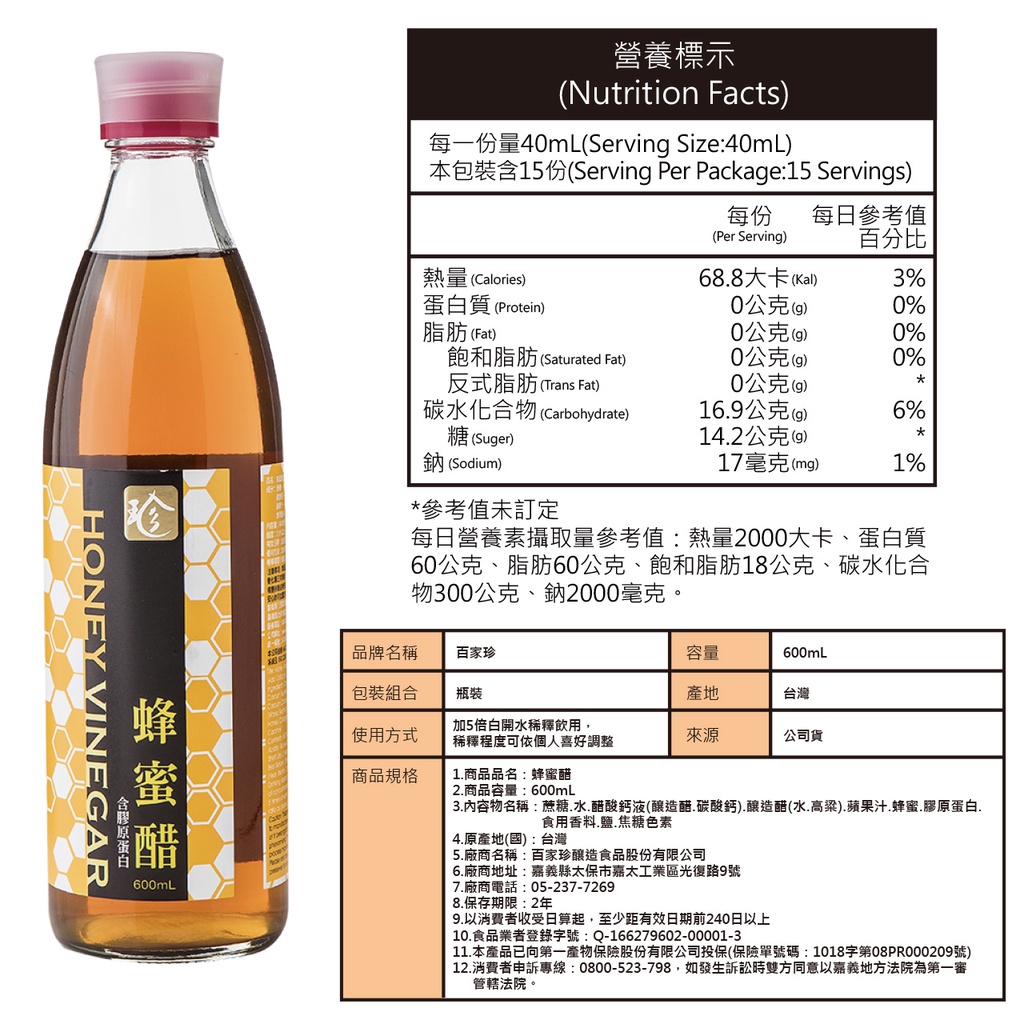 【百家珍】美妍果醋4入組(蔓越莓醋/紅葡萄醋/桑椹醋/蜂蜜醋)600mL*4