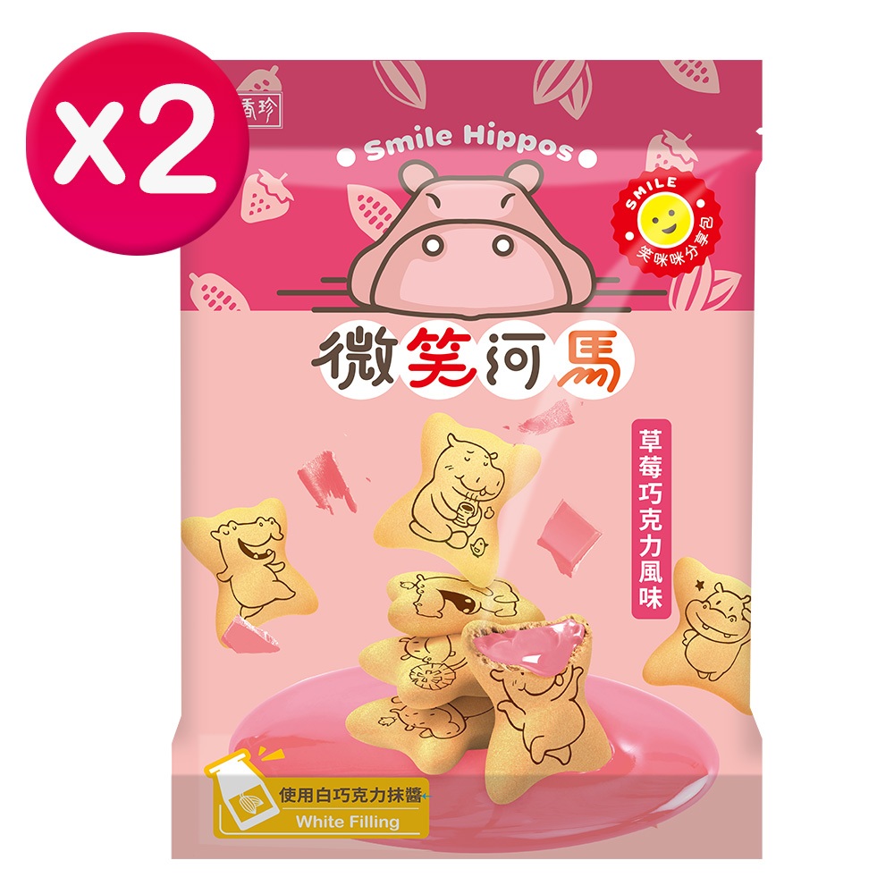 【盛香珍】微笑河馬餅200gX2包組(巧克力風味/草莓巧克力風味) |官方旗艦店 活動賣場 超取限3組