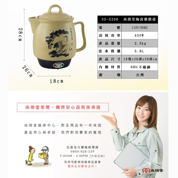 【禾同電商】含稅發票刷卡~SS-3200 尚朋堂SPT 3公升藥膳壺 台灣製造