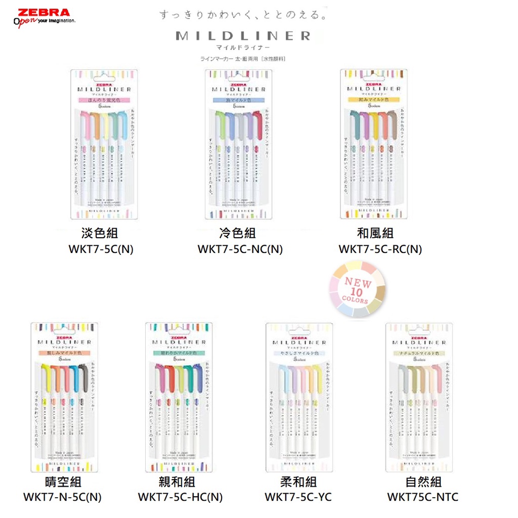 【筆倉】日本 斑馬 ZEBRA MILDLINER WKT7 雙頭螢光筆 5色組 (共有七組可選)
