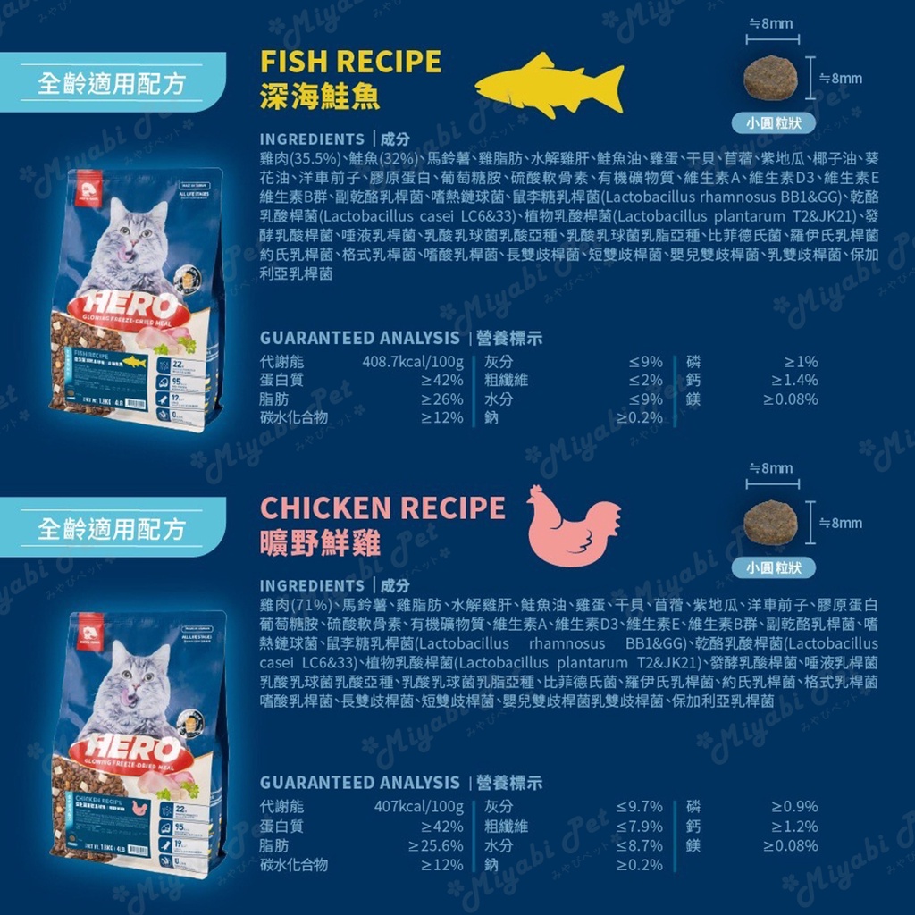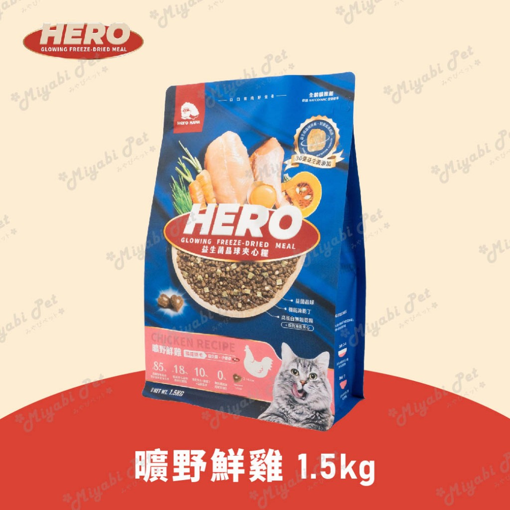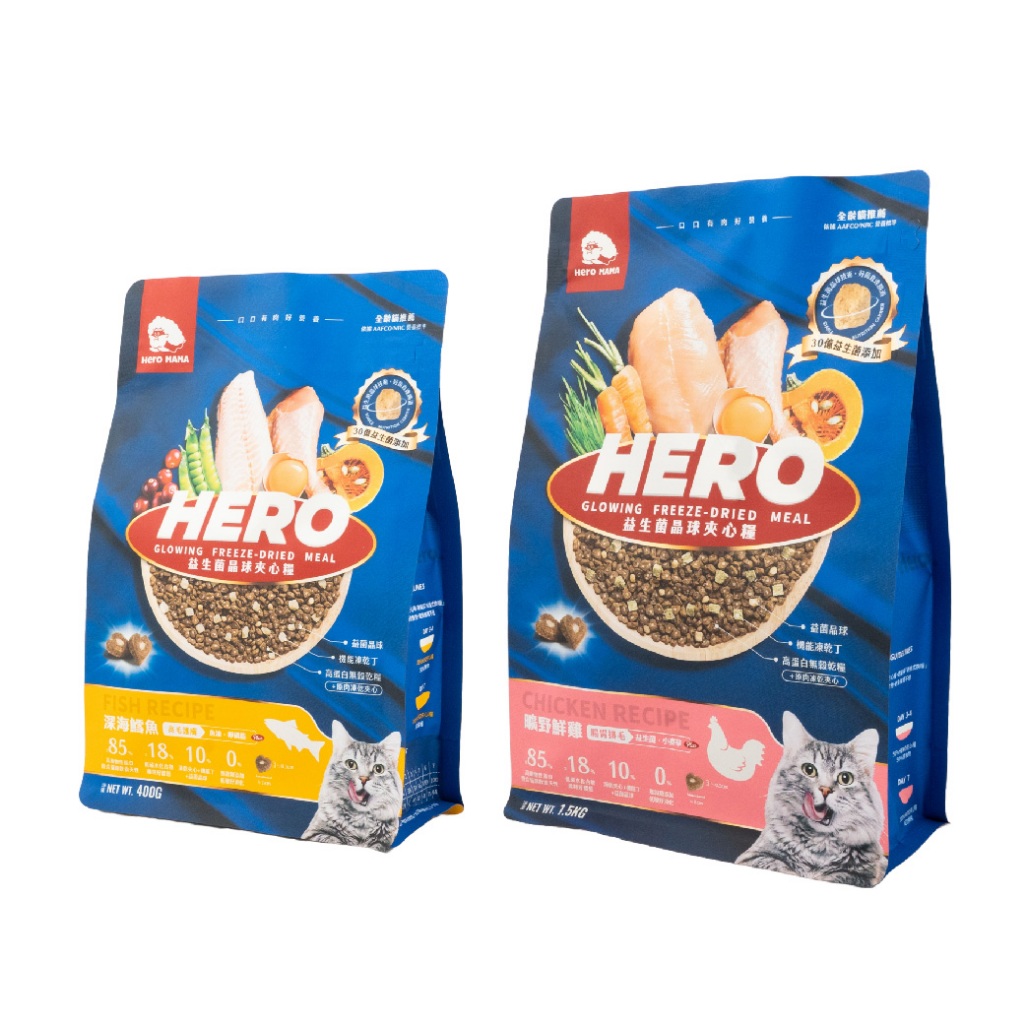 【米亞比寵物】益生菌凍乾夾心糧 HeroMama 夾心糧 全新包裝 貓糧 無穀 貓乾糧 貓飼料 益菌凍乾晶球原肉凍乾