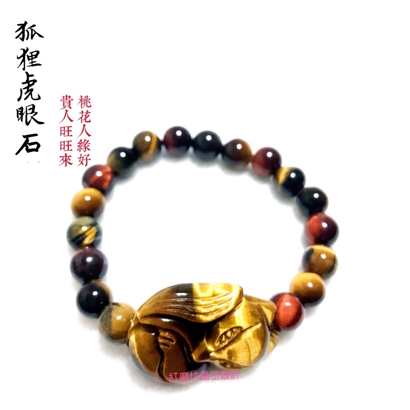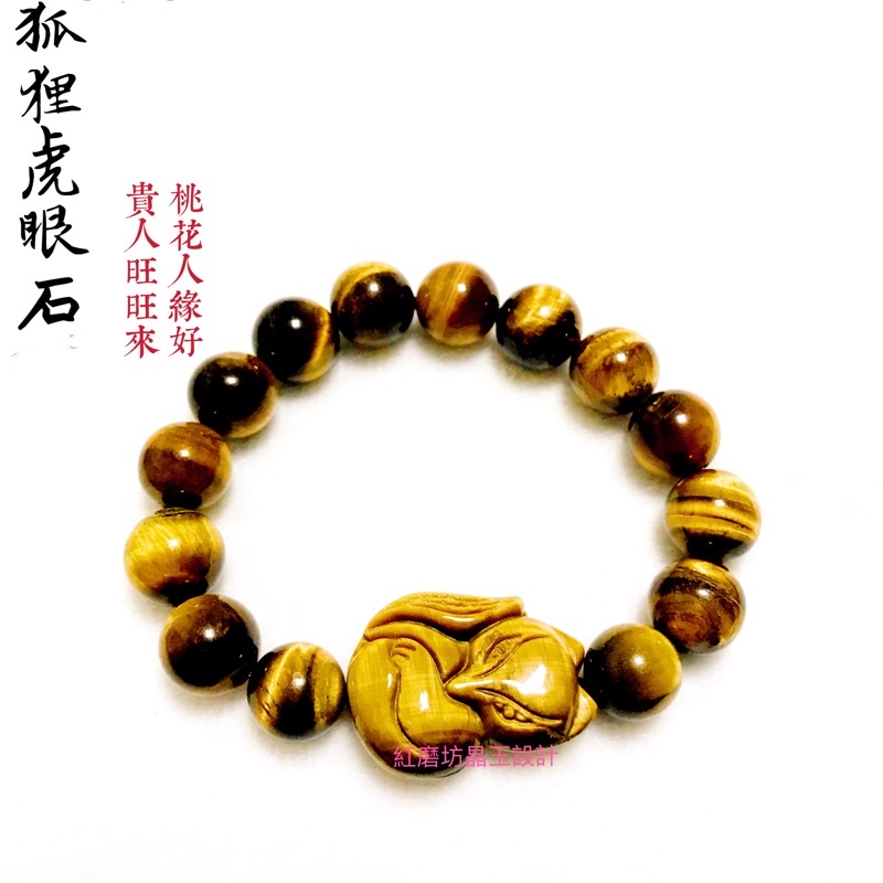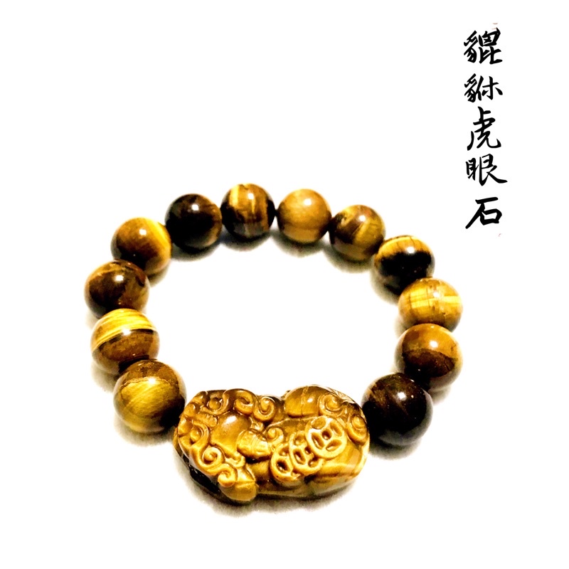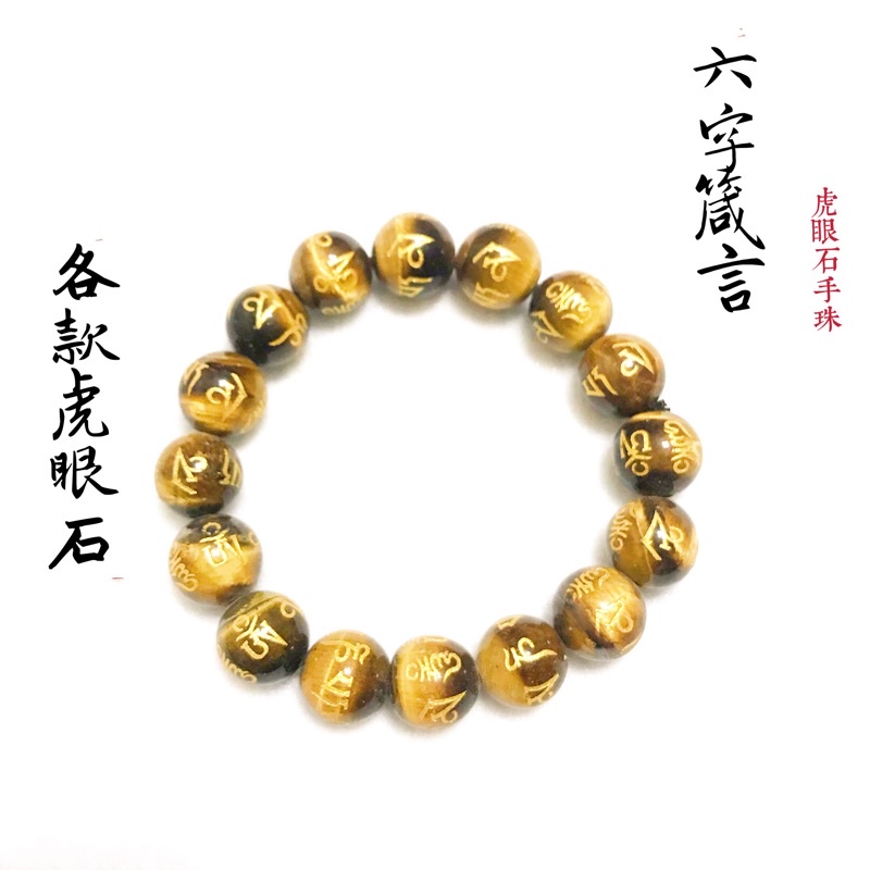 【紅磨坊】虎眼手鍊 黃虎眼 大手圍 黃虎虎眼手鍊 六字箴言 貔貅 狐狸