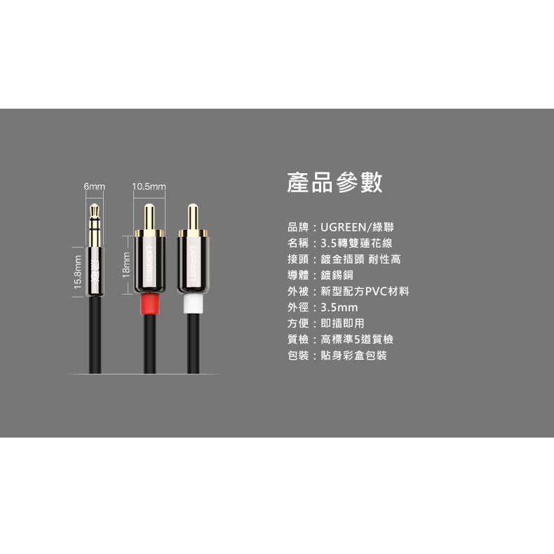 【綠聯】 3.5MM轉2RCA立體聲音源線 1~5公尺