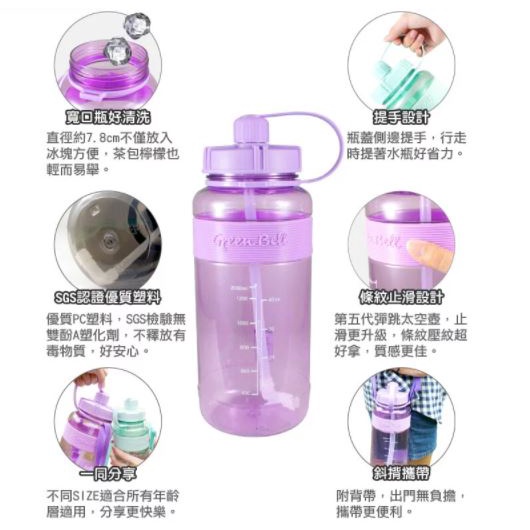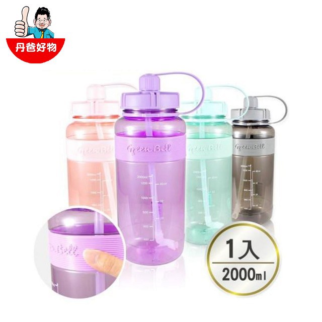 【綠貝】GREEN BELL 超止滑彈跳吸管太空水壺V(附背帶) 2000ml