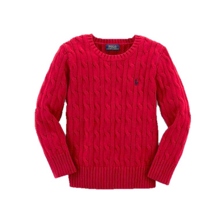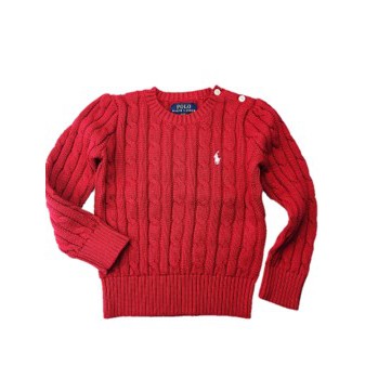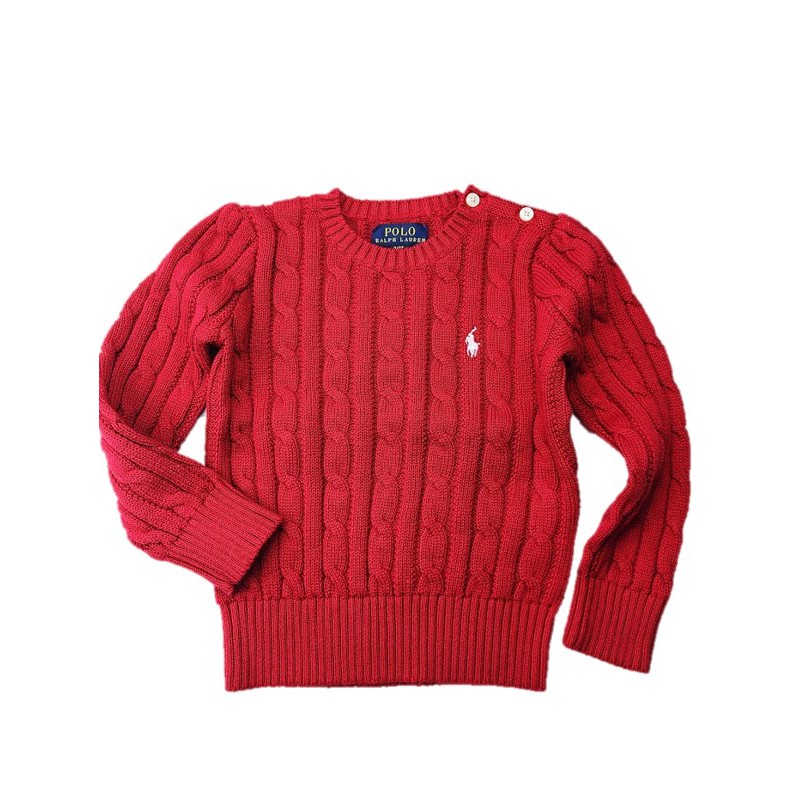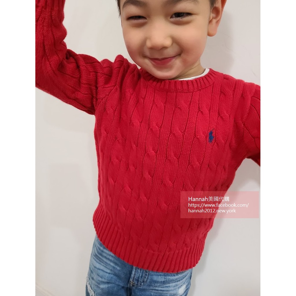 【美國代購正品】POLO RL 小童 立體編織 圓領 純棉 毛衣 紅色
