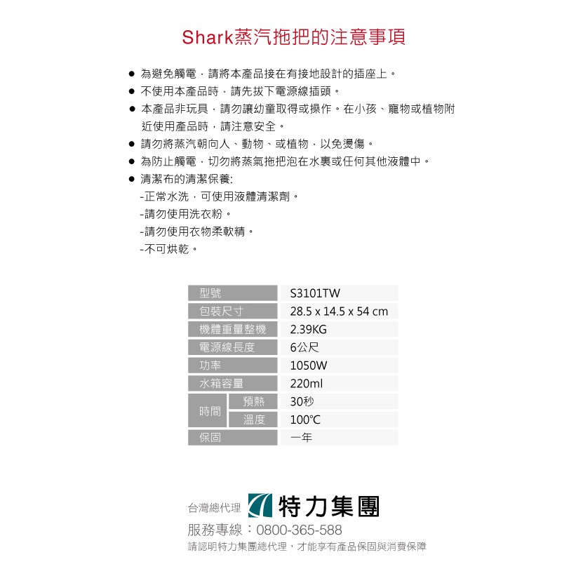 【美國鯊科Shark】 超輕量蒸氣拖把 S3101TW
