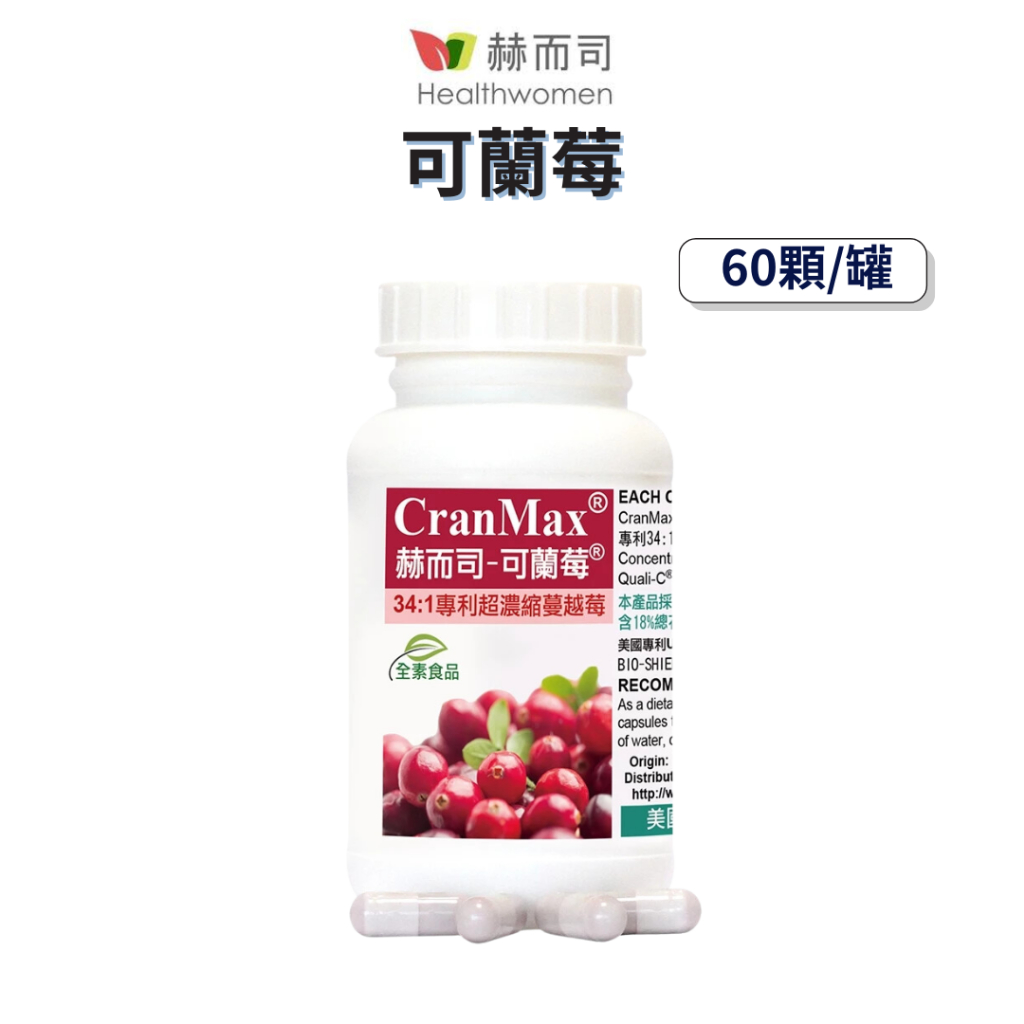 【美麗人生藥局】赫而司 美國專利Cran-Max 可蘭莓 超濃縮蔓越莓植物膠囊 60顆/罐