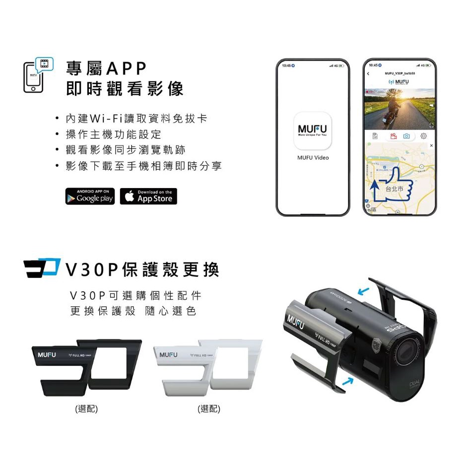 【現貨/贈128G+鏡頭保護貼】 MUFU V30P 好神機 雙鏡頭機車行車記錄器 內建GPS WIFI 高續航
