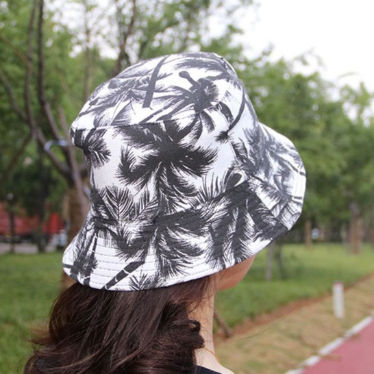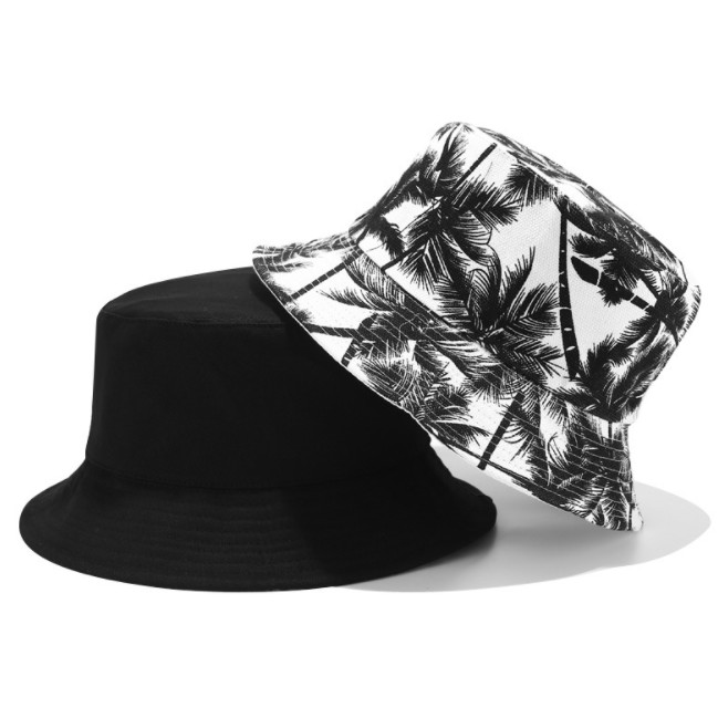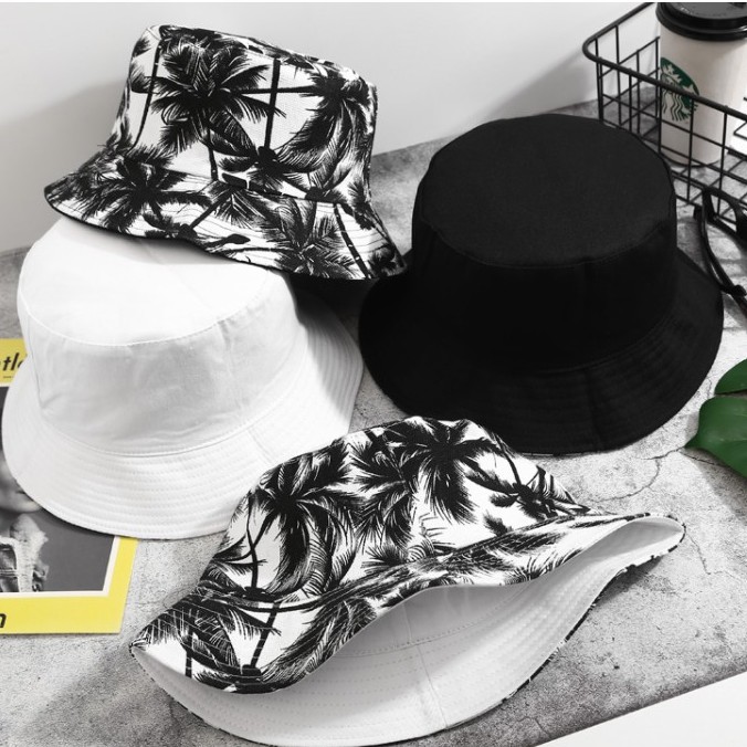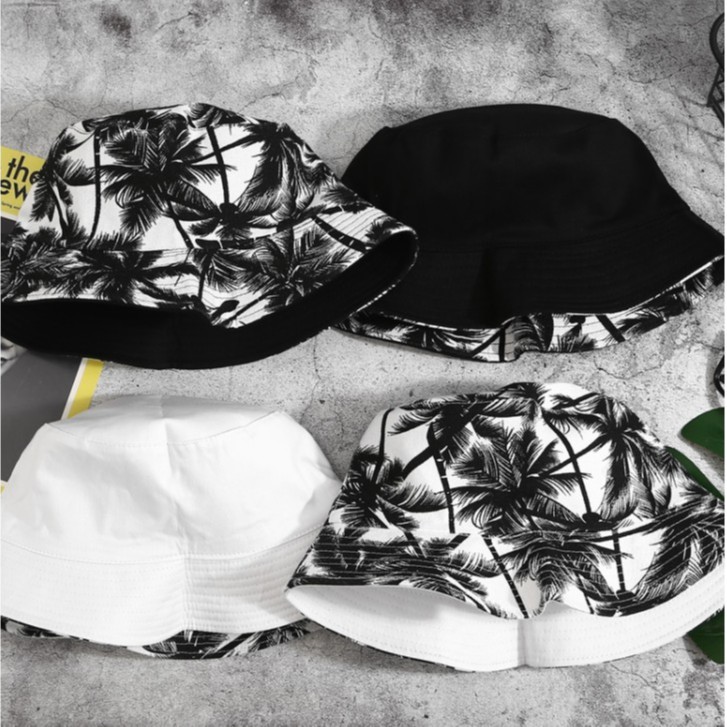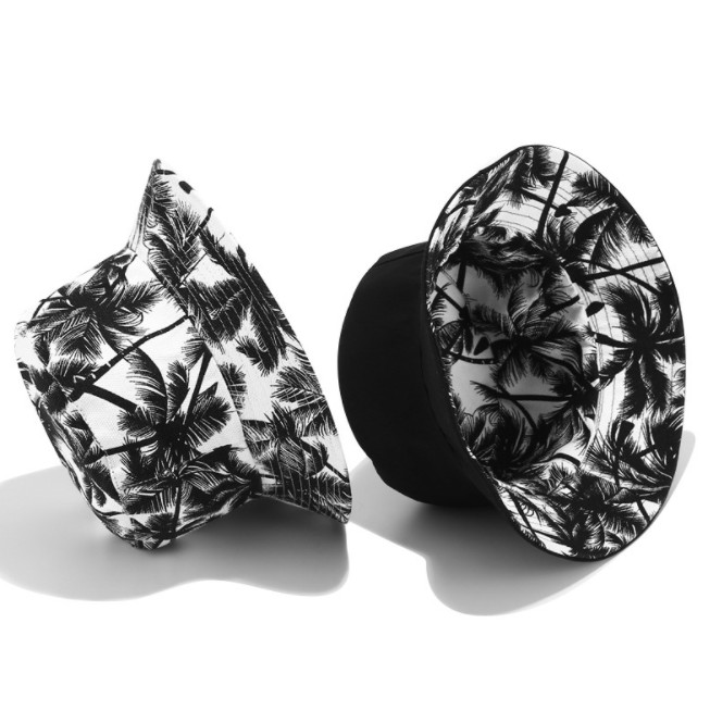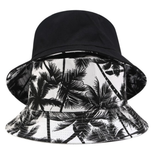 【自己人】(雙面戴)漁夫帽男女潮印花椰樹雙面戴盆帽戶外出遊遮陽帽爆款(椰樹雙面)