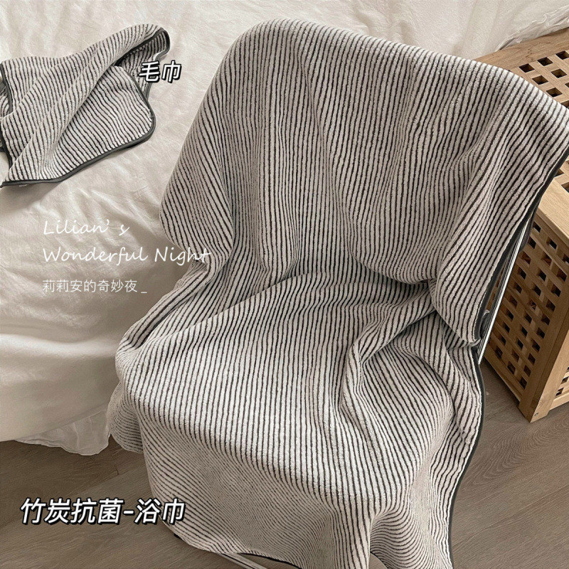 【臺灣出貨】熱銷推薦~竹炭灰浴巾家用高顔值毛巾浴巾大號成人特大二件套源工廠批髮