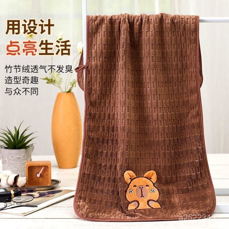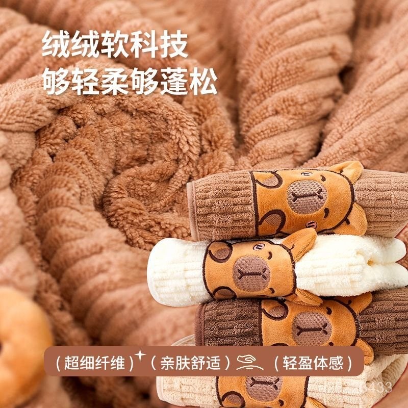 【臺灣-出貨】卡皮巴拉 水豚毛巾 可愛洗臉毛巾家用洗澡新款麵巾珊瑚絨比純棉吸水男女兒童可愛手巾 1MNR