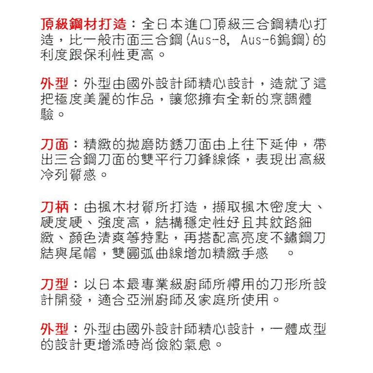 【臻 官方賣場】 ★日本進口頂級三合鋼★~楓木柄- 三德刀、萬用主廚料理刀、多用途料理刀