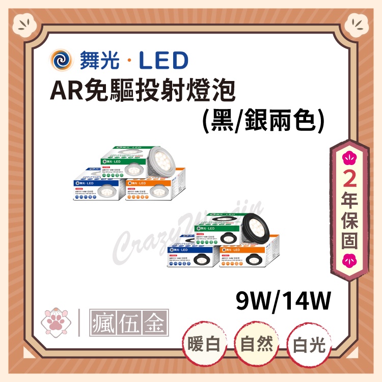 【瘋伍金燈飾】舞光 AR111 9W 14W LED免驅投射燈泡 黑殼 銀殼 黃光 自然光 白光 崁燈 軌道燈
