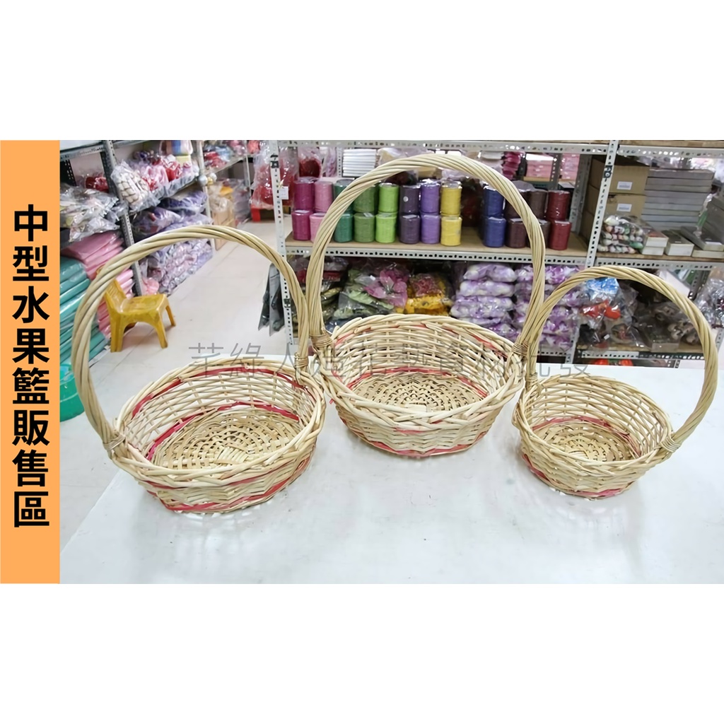 【芊綠人造花藝資材批發】台灣現貨 中型圓 水果籃 竹籃 喜糖籃 禮品籃 藤籃 籃子 園藝 送禮 婚宴 花籃 蘭花