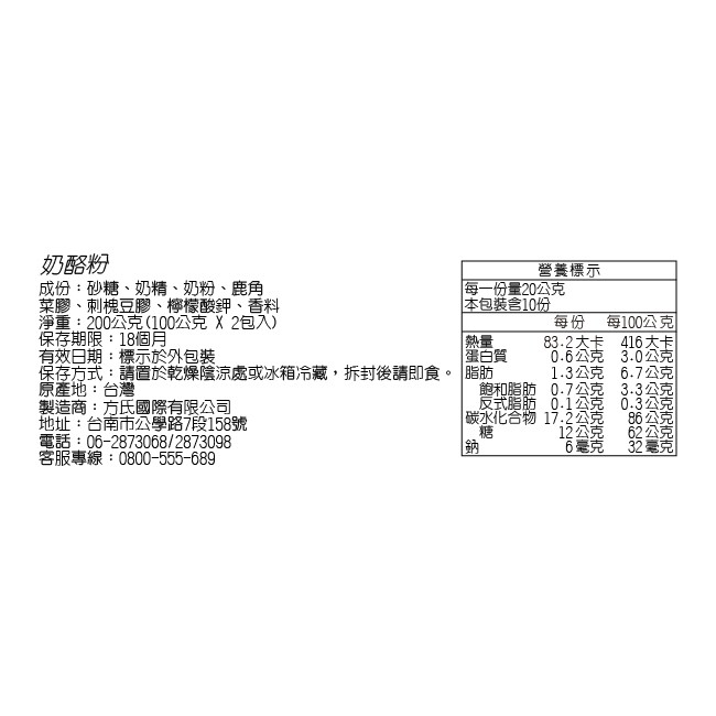 【花鹿水】奶酪粉(蛋奶素,200、800g)-FANGS方氏 預拌粉系列