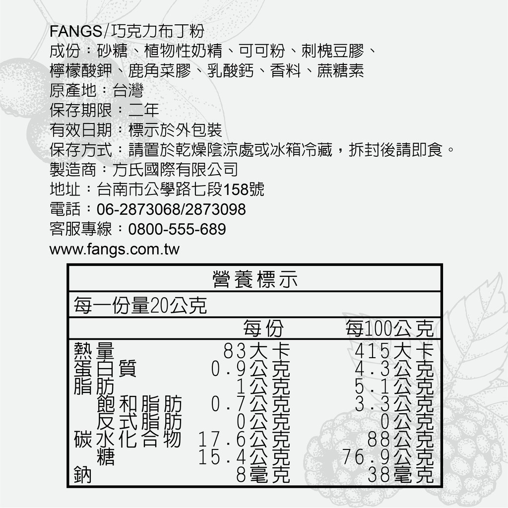 【花鹿水】巧克力布丁粉(蛋奶素,200、800g。加水製作,簡單方便)-FANGS方氏 凍粉系列