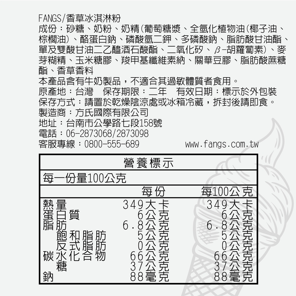 【花鹿水】香草冰淇淋粉(蛋奶素,200、800g。操作簡單,口感綿密)-FANGS方氏 冰淇淋粉系列