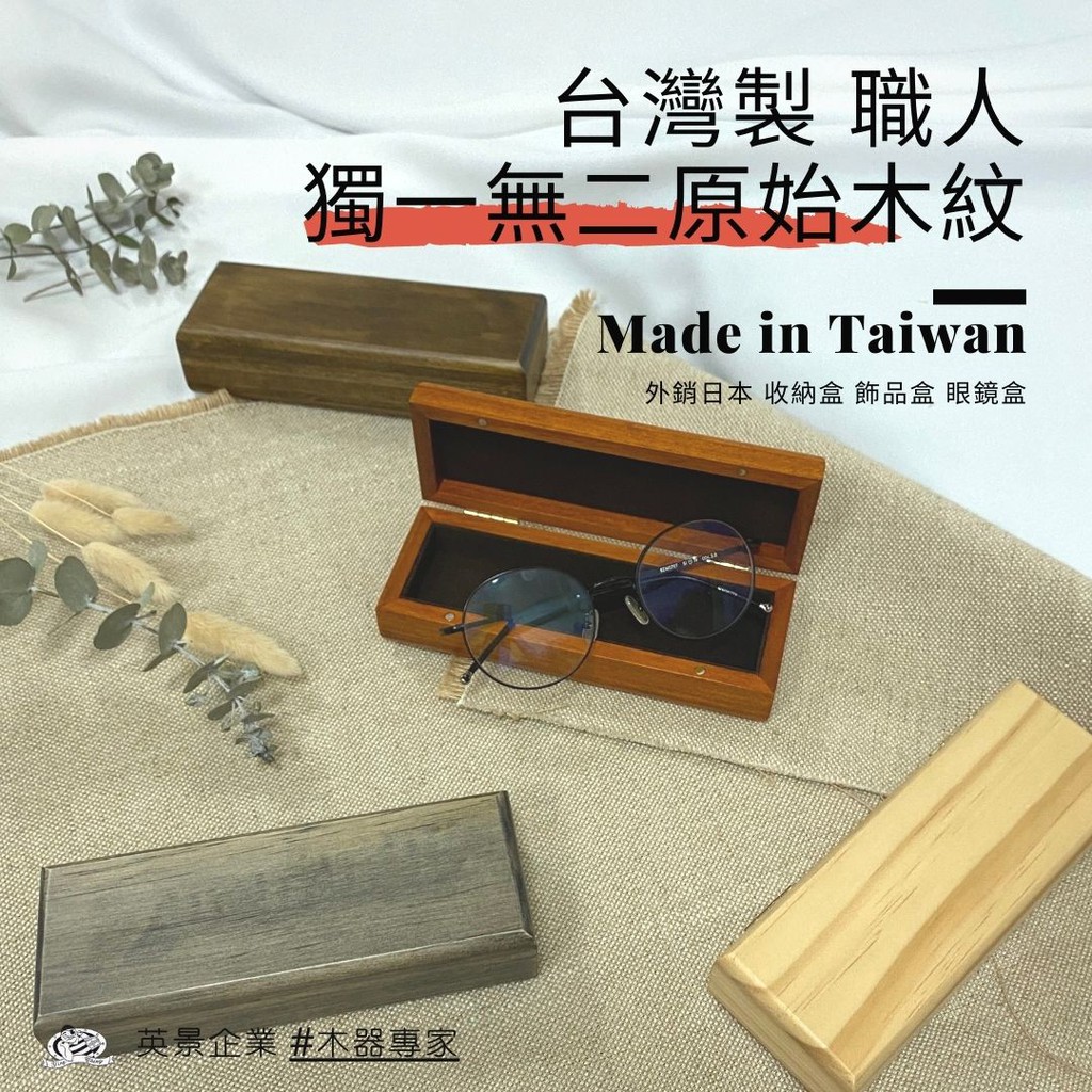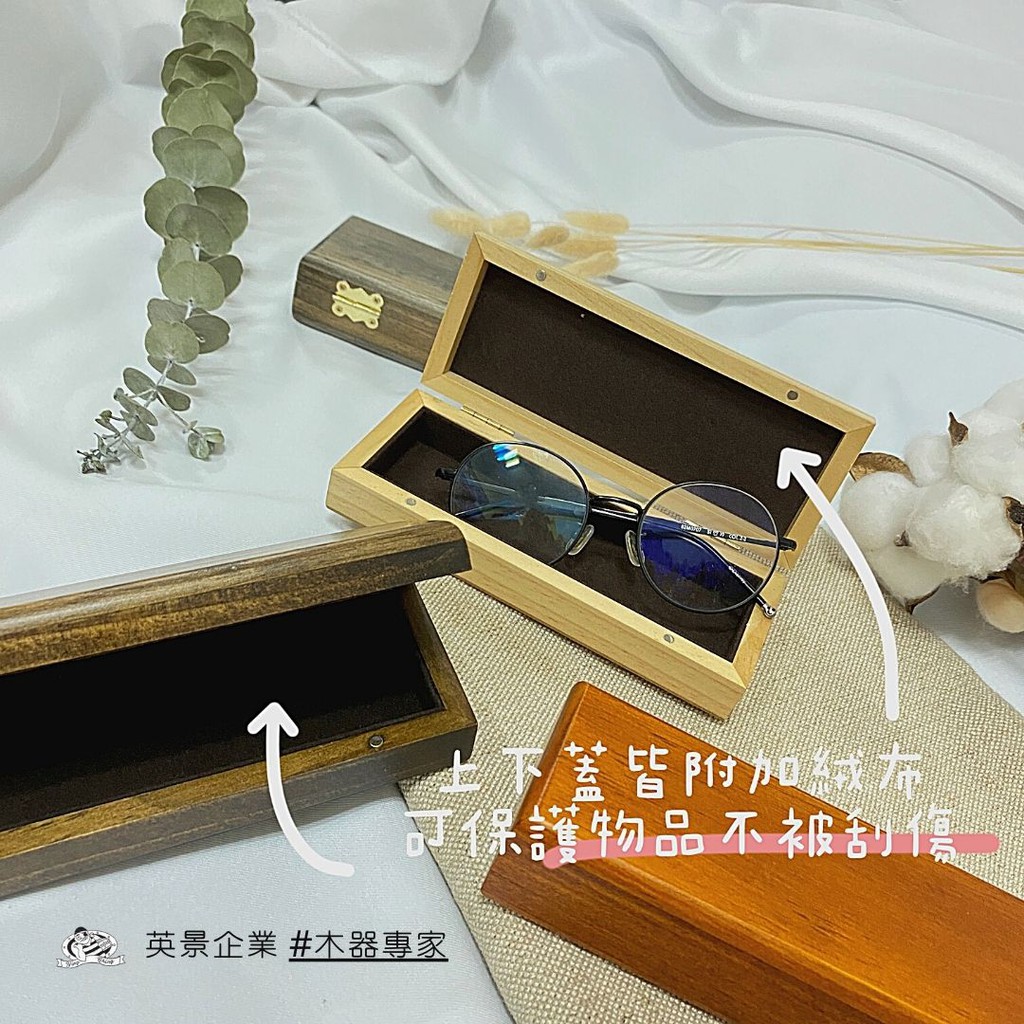 【英景 #木器專家】台灣製 外銷日本 復古時尚 天然木紋 高質感實木製內絨布眼鏡盒 木盒 收納盒 實木收藏盒 長方盒