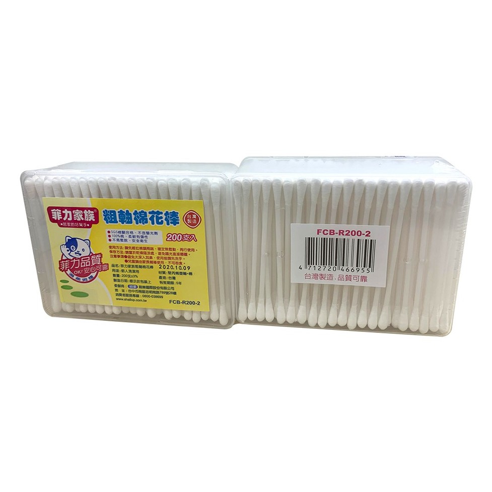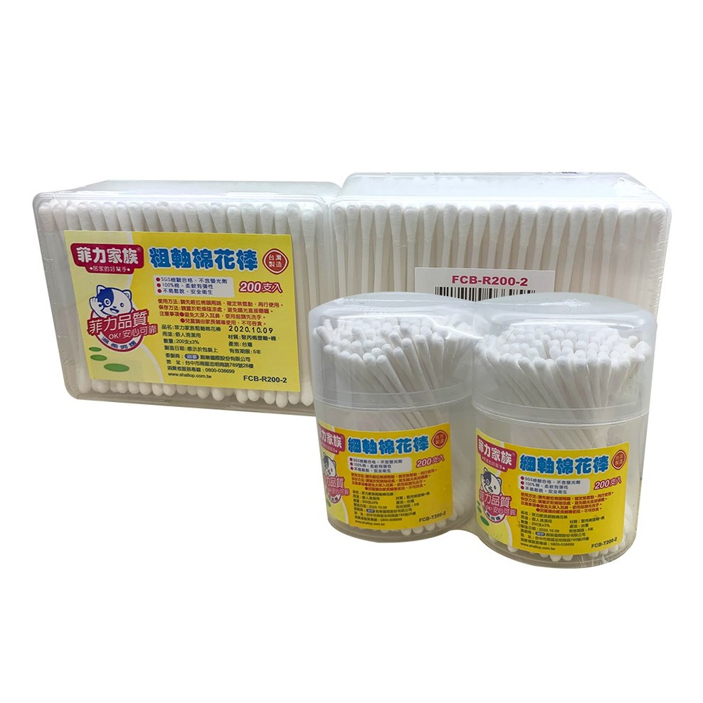 【菲力家族】 細軸棉花棒/粗軸棉花棒 200支 x 2入
