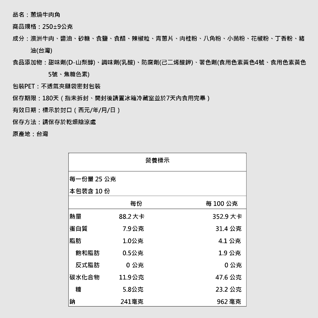 【萬味軒肉乾】牛肉乾系列 -【蔥燒牛肉角 250g】伴手禮送禮台中名產老店團購辦公室小資族美食肉乾名店推薦