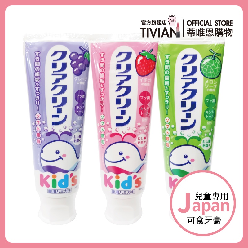 【蒂唯恩】KAO 日本花王 兒童牙膏 日本製造 哈密瓜 草莓 葡萄 70g 嬰兒孩童可吞食 水果味