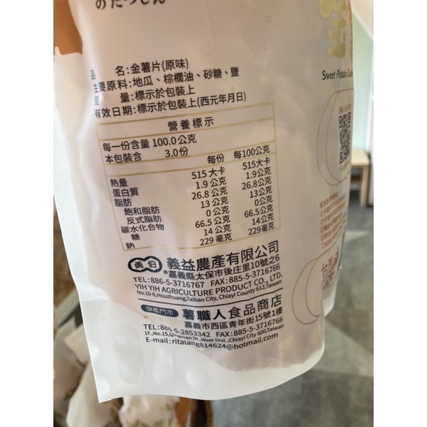 【薯職人】金薯片地瓜片番薯片(原味)300公克/包
