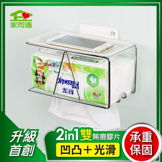 【蝦皮店到店(家而適)原廠進貨】家而適第二代面紙抽取放置架(附手機平台) 無痕掛勾 面紙盒 防水 紙巾架