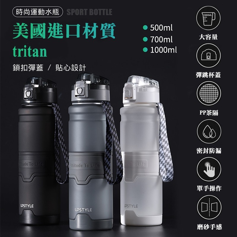 【蝦皮直營】宏晉 防摔運動水壺 500/700/1000/黑/灰/白 tritan 材質 運動 水瓶 水壺 現貨