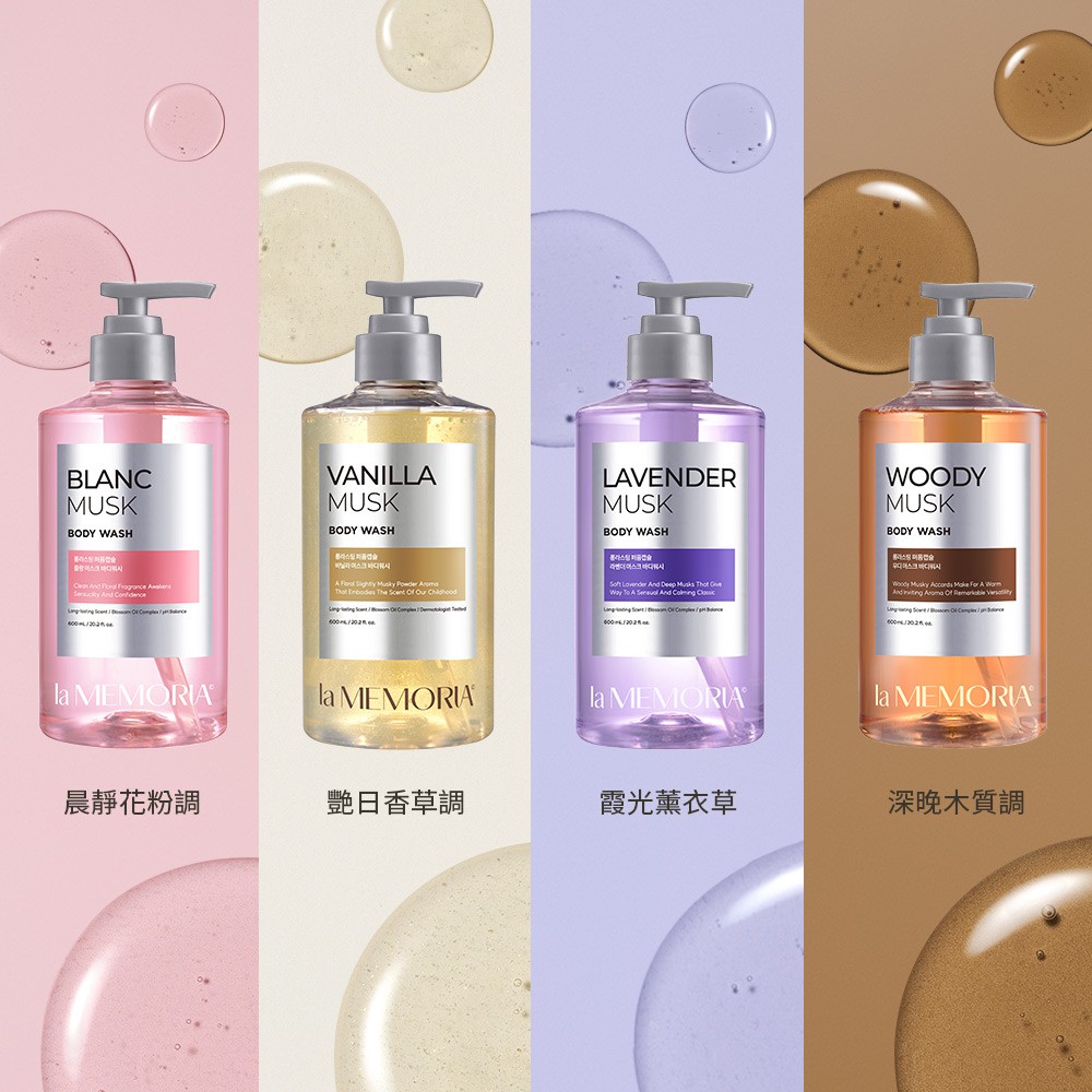 【蝦皮直營】la MEMORIA 記憶香氛沐浴乳 600ml 豔日香草調 晨靜花粉調 霞光薰衣草深晚木質調台灣總代理