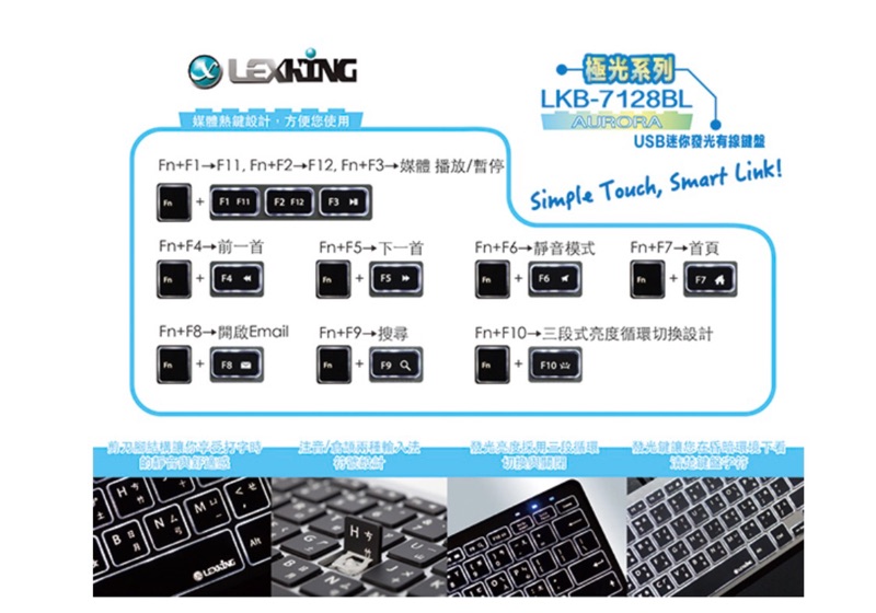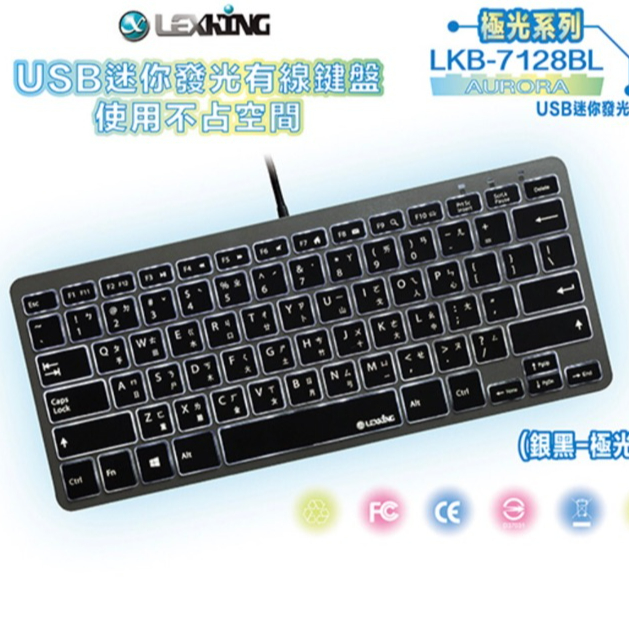 Lexking 雷斯特 LKB-7128BL 鍵盤 筆電 Windows 有線鍵盤 MAC 微軟 剪刀腳 銀黑 極光白