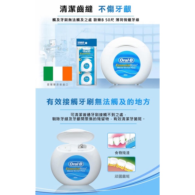 【詠晴中西藥局】歐樂B-薄荷(微蠟/無蠟)牙線-50m(2入組)|三合一牙線 超級牙線