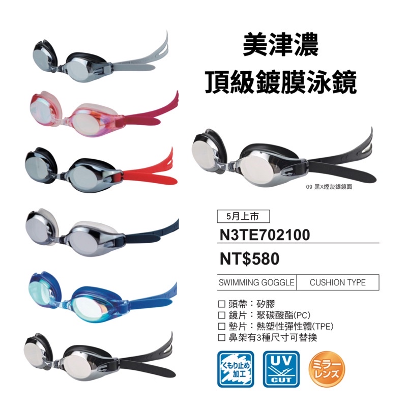 【詹姆士的店】美津濃 鍍膜泳鏡 蛙鏡 海泳 游泳眼鏡 抗強光 防霧 鏡面反射 泳鏡 蛙鏡