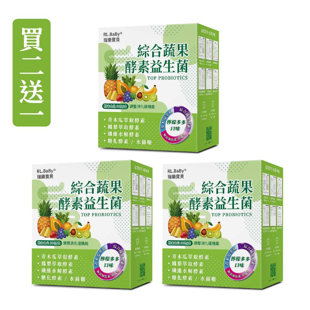 【買二送一】瑞樂寶貝綜合蔬果酵素益生菌30入|久坐外食族順暢補充 義大利順暢專利菌株 水蘇糖 水溶性膳食纖維Fibryx