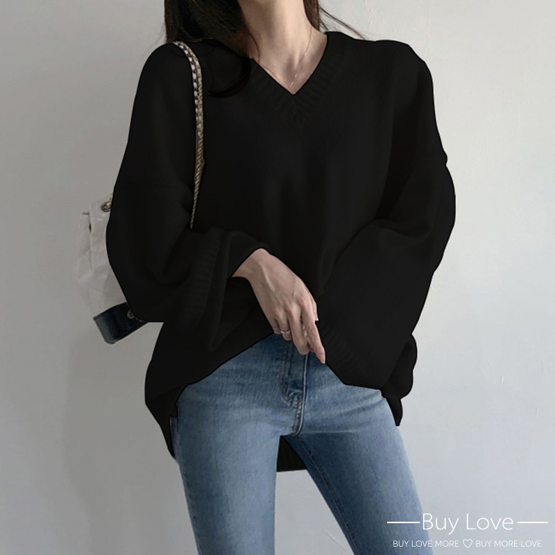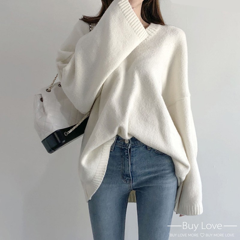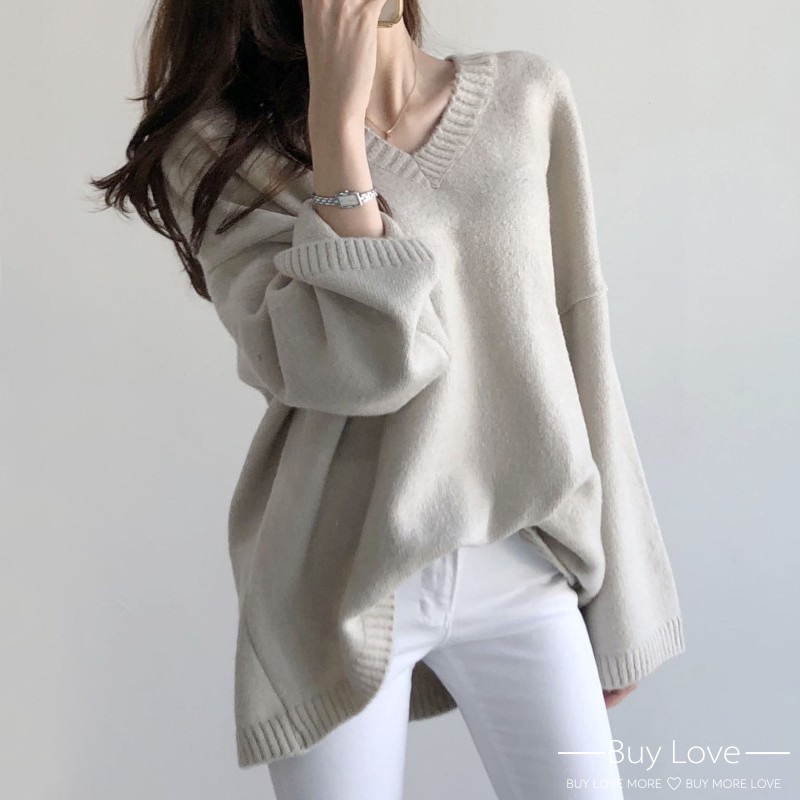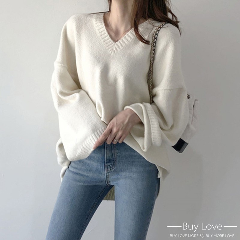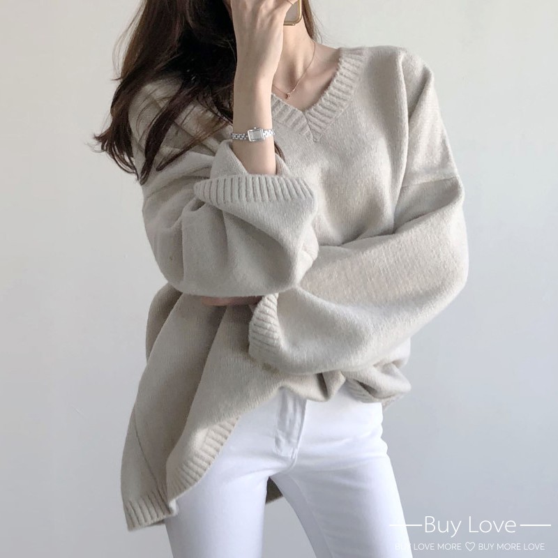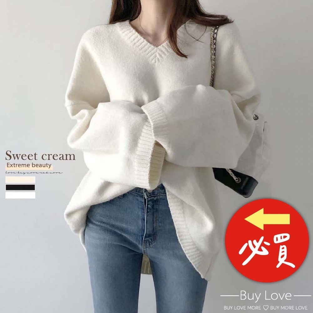 【買到戀愛】隔日到貨 奶茶慵懶寬鬆 V領毛衣 針織毛衣 素面 韓版 柔軟 百搭 針織 基本款【FR9219】