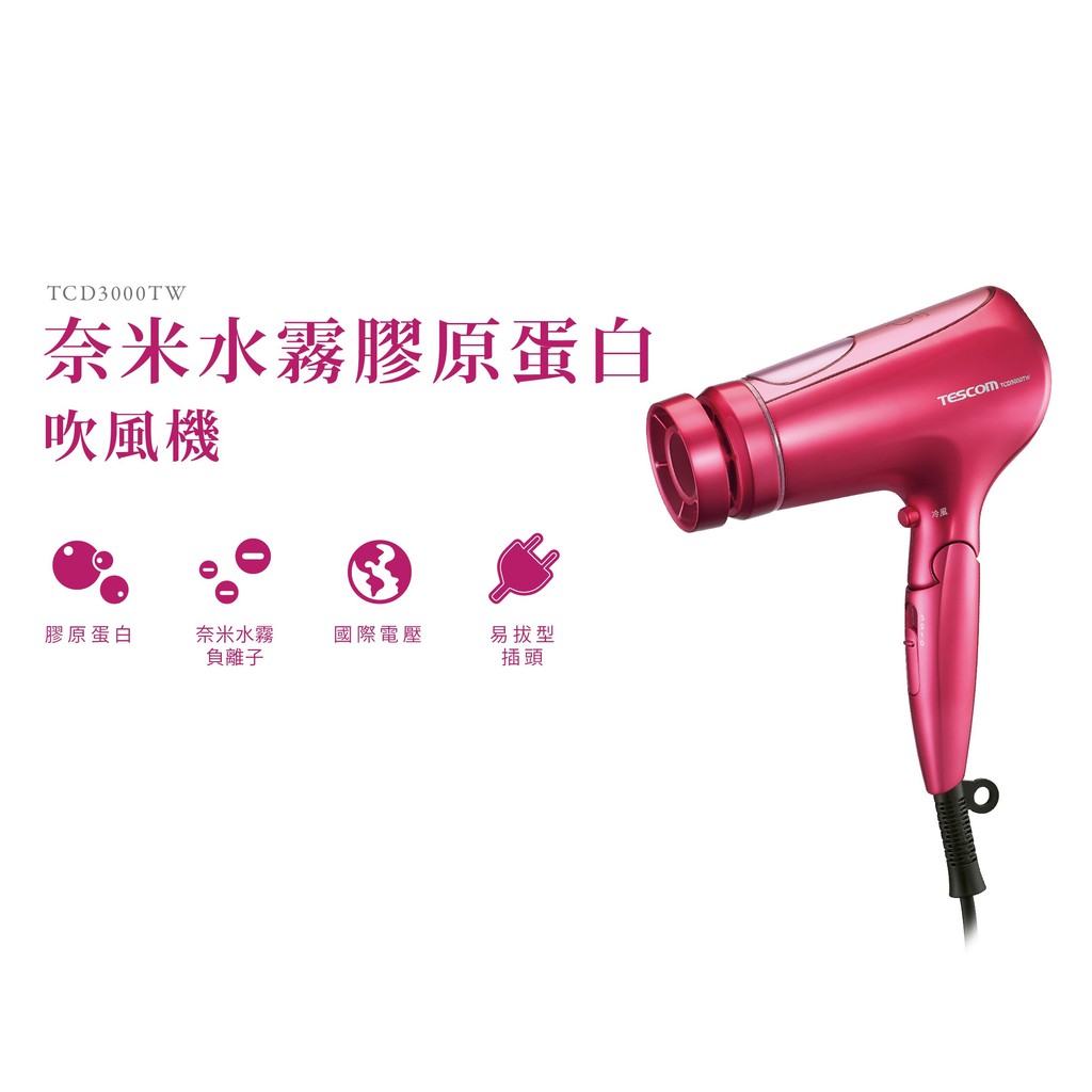【超商免運費|EDSHOP】TESCOM TCD3000 奈米水霧 膠原蛋白 吹風機 TCD3000TW國際電壓