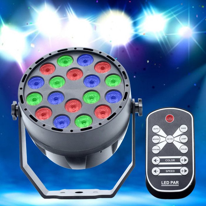 【迷你PAR燈】18顆全彩/紫光 Led紅外線搖控聲控帕燈 迷你PAR燈 18W