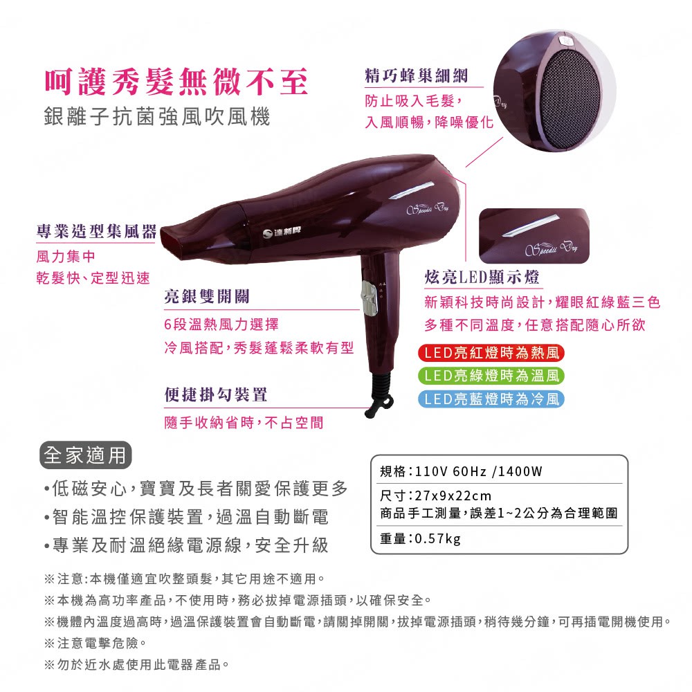 【達新牌】銀離子抗菌強風吹風機 TS-2929