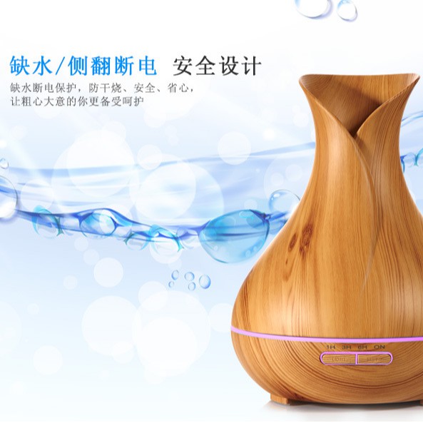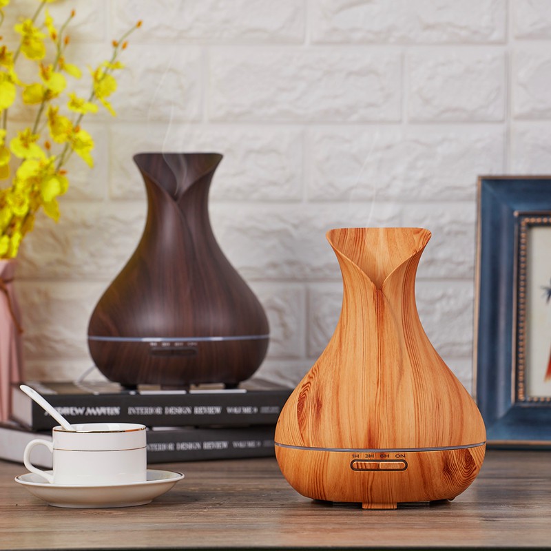 【遙控版550ML花瓶木紋】(贈精油) 淺木紋 超聲波負離子香薰水氧機/加濕器/水霧機/芳香/禮物/夜燈【香沐】保固