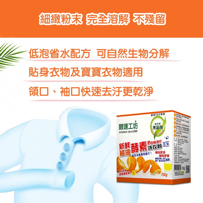 【酵速工坊-超取限1件】橘油酵素Power洗衣粉 700g盒裝(附湯匙)x6入 (開立發票)