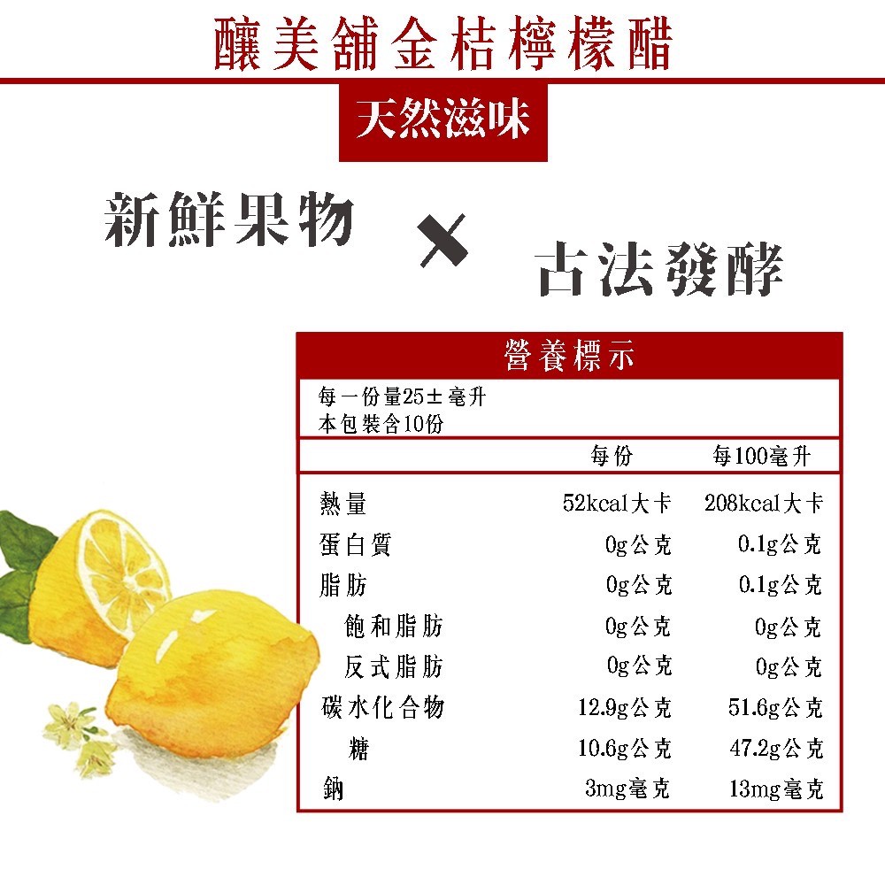 【釀美舖】金桔檸檬醋 250ml (100% 鮮果釀造)