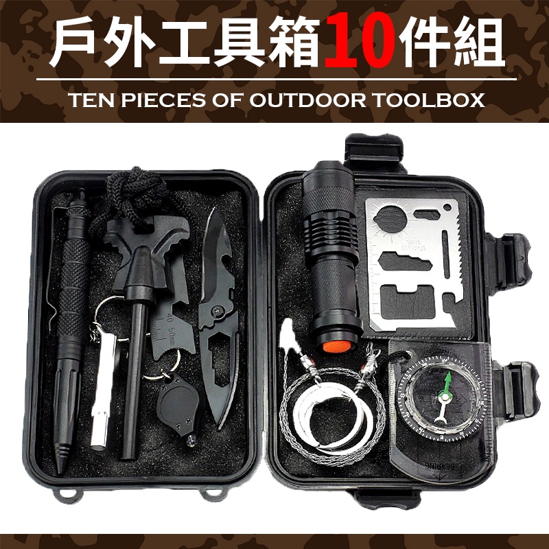 【野外露營,多功能求生】戶外工具10件套 野外工具 求生工具盒 露營工具 野營 登山工具 野外求生 救援工具 求生包