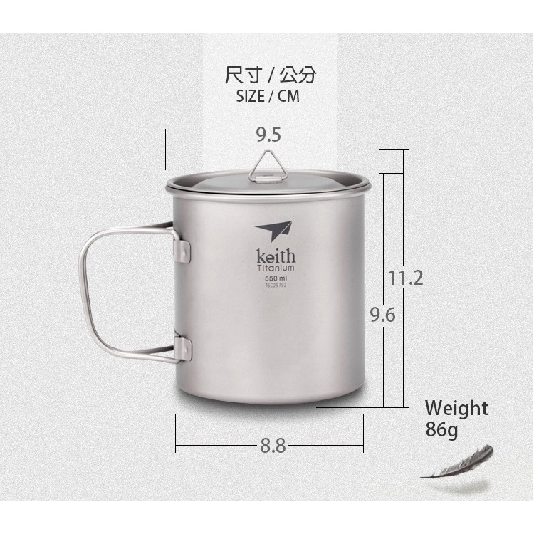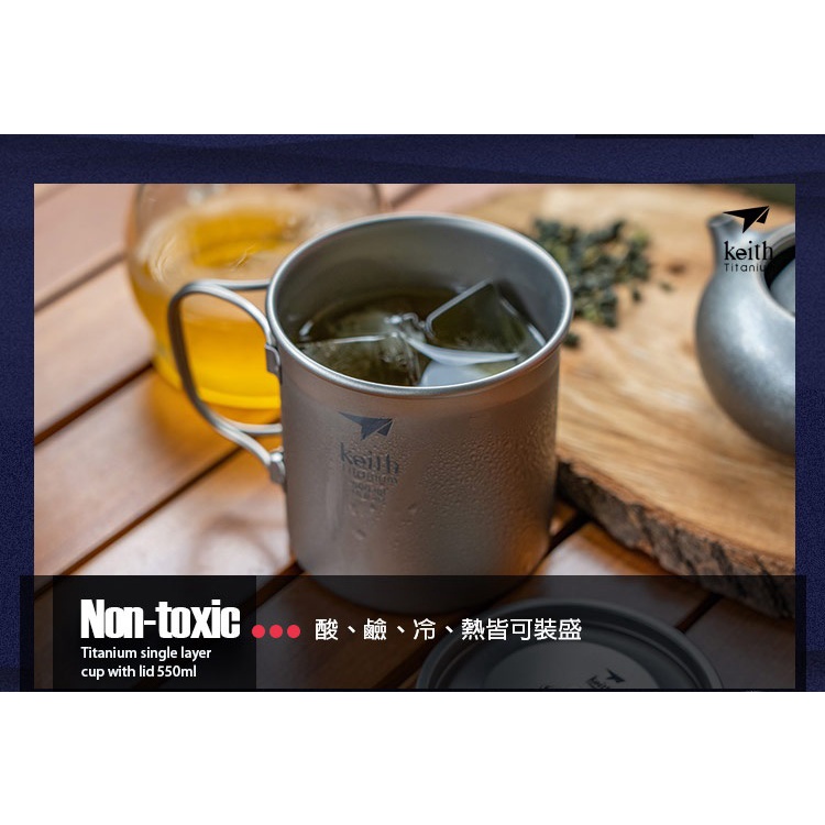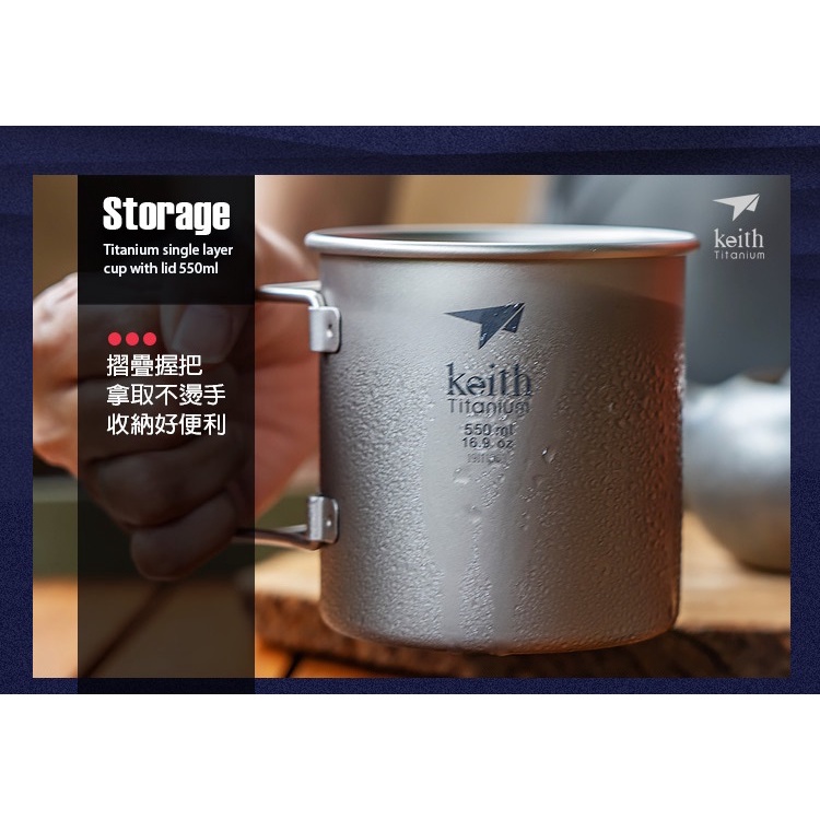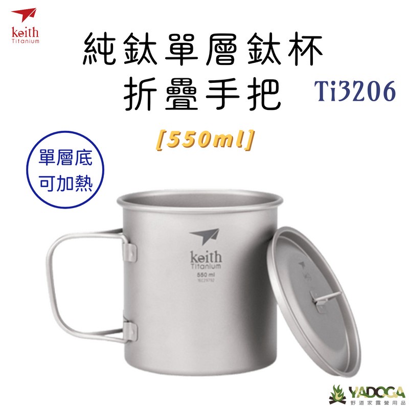 【野道家】Keith 鎧斯 Ti3206 純鈦單層鈦杯 折疊手把 550ml